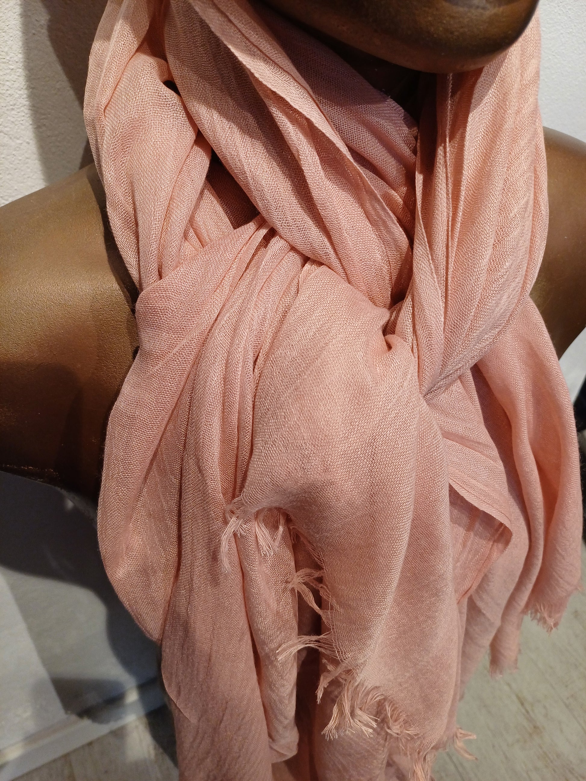 Dette tørklæde er klassisk type der pifter hvilken som helts outfit op. Det lette materiale gør tørklædet behageligt at bære, og det store format giver dig mulighed for at style det på mange måder, enten som sjal eller klassisk tørklæde.
