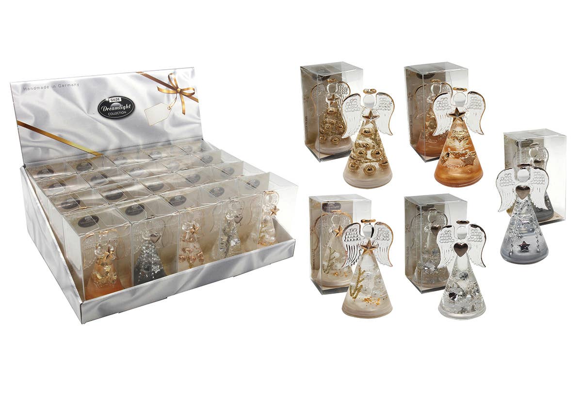 Skab en magisk og stemningsfuld atmosfære med disse smukke mini glasengle. Hver engel er i fint glas og dekoreret med glitrende guld- eller sølvdetaljer, som fanger lyset på den mest fortryllende måde.