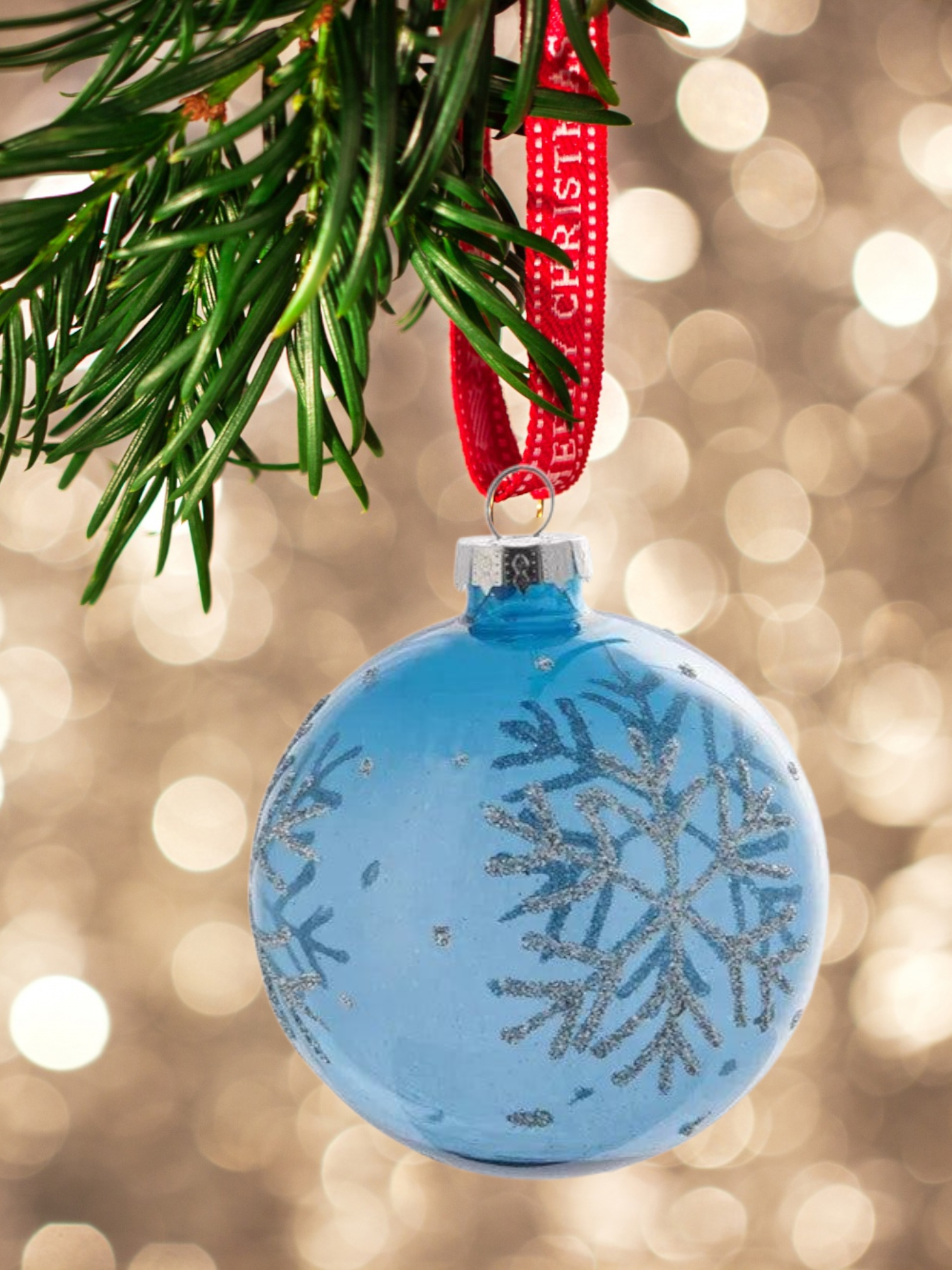 Gør din juleudsmykning ekstra elegant med disse smukke blå glaskugler. Med deres unikke snefnug-design og glitrende overflade fanger de lyset på magisk vis, hvilket skaber en fortryllende stemning på juletræet eller som en del af en dekorativ opsætning.