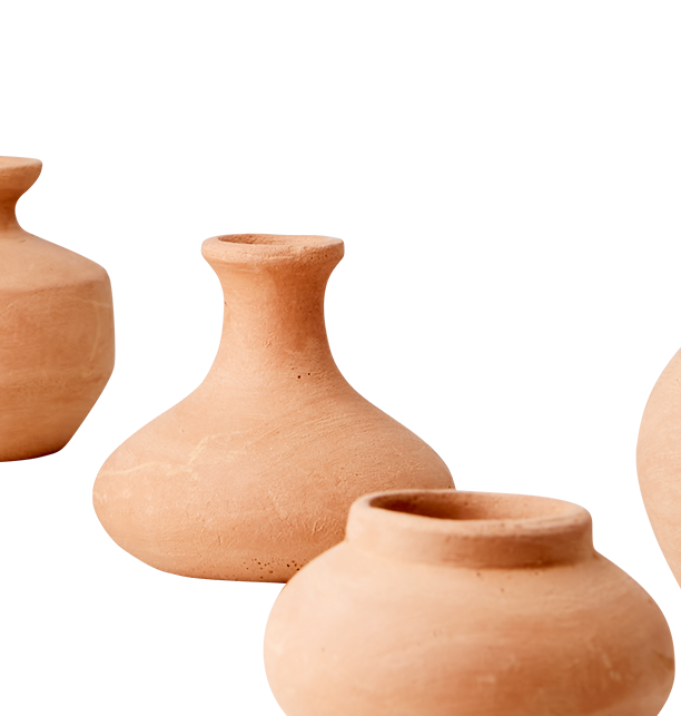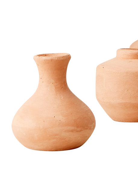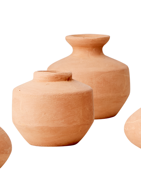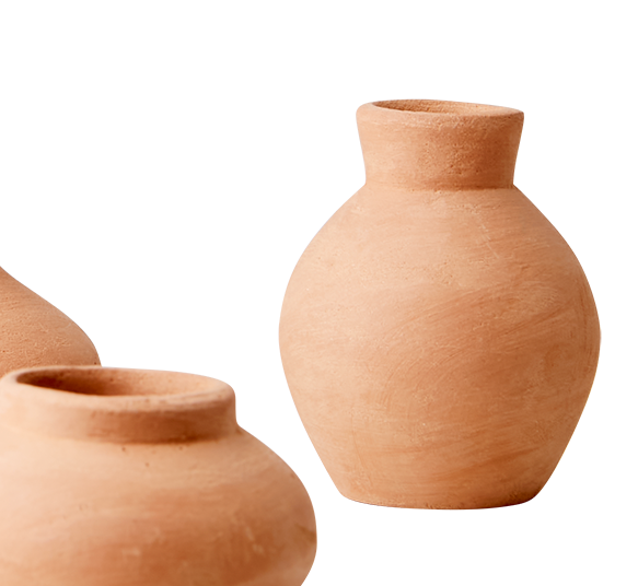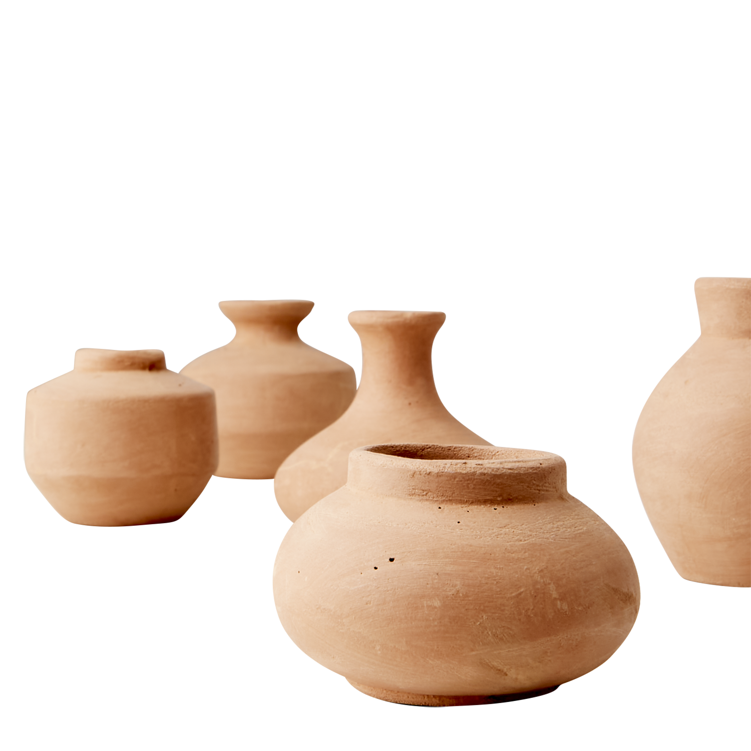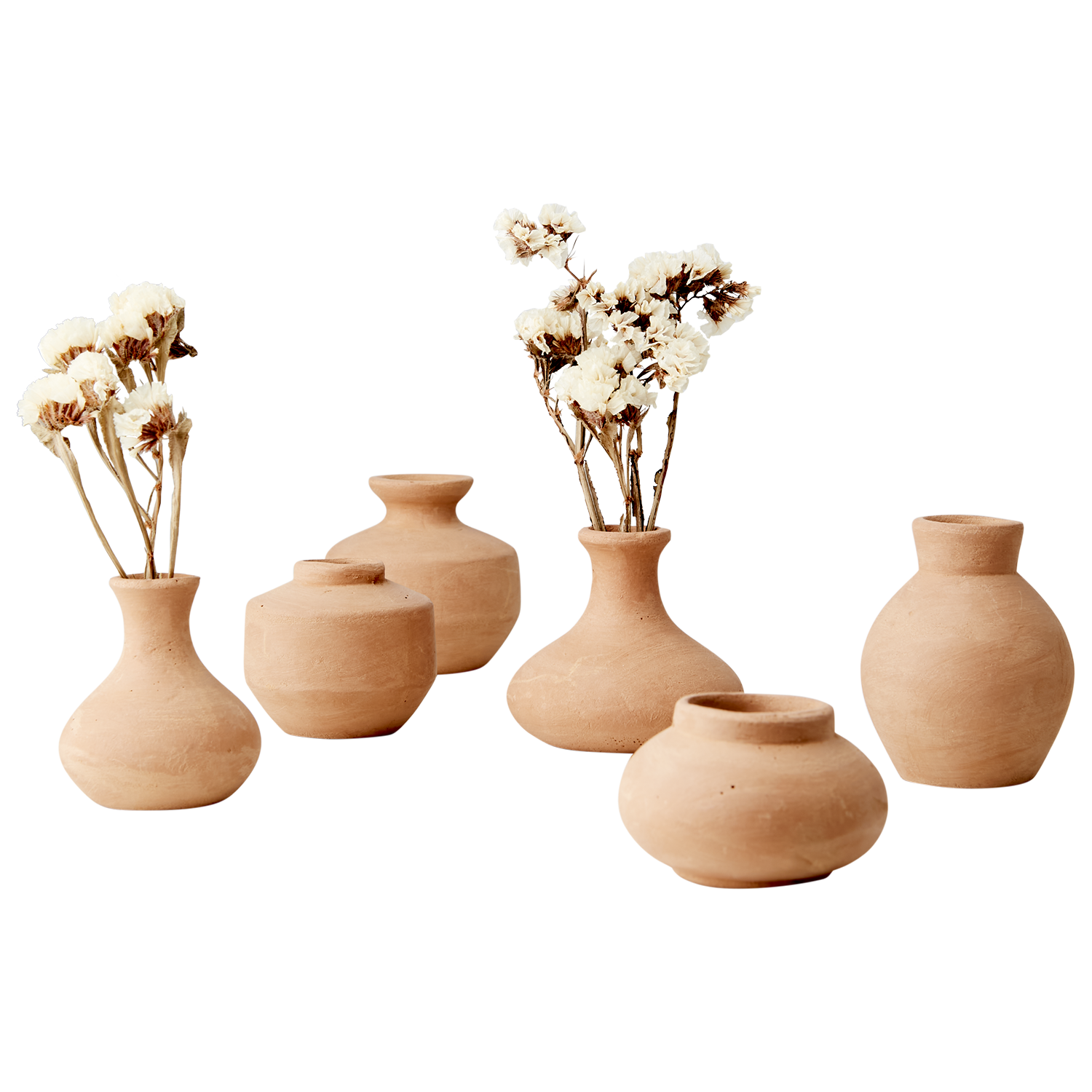 Farven er natur og rå, da vaserne ikke er glaseret og hermed kan de ikke holde vand.