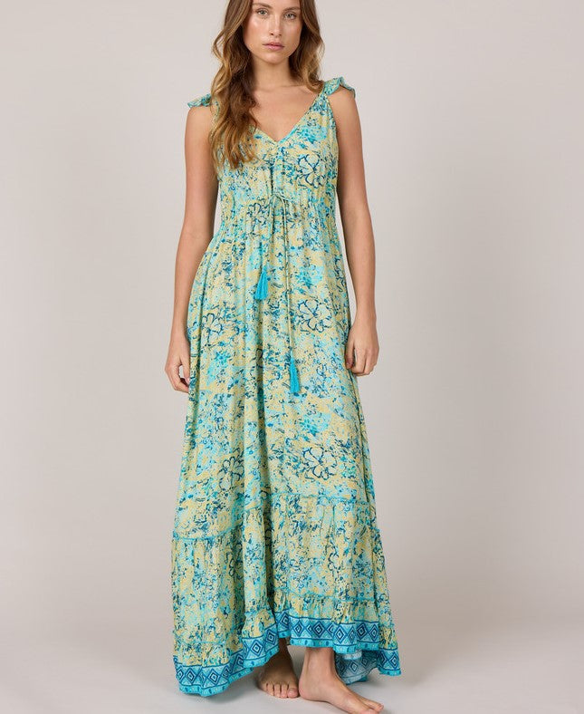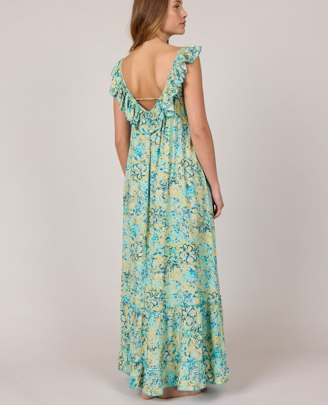 Lang sommer kjole med flæse stropper.