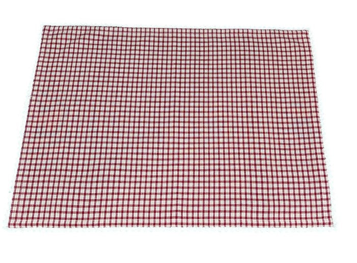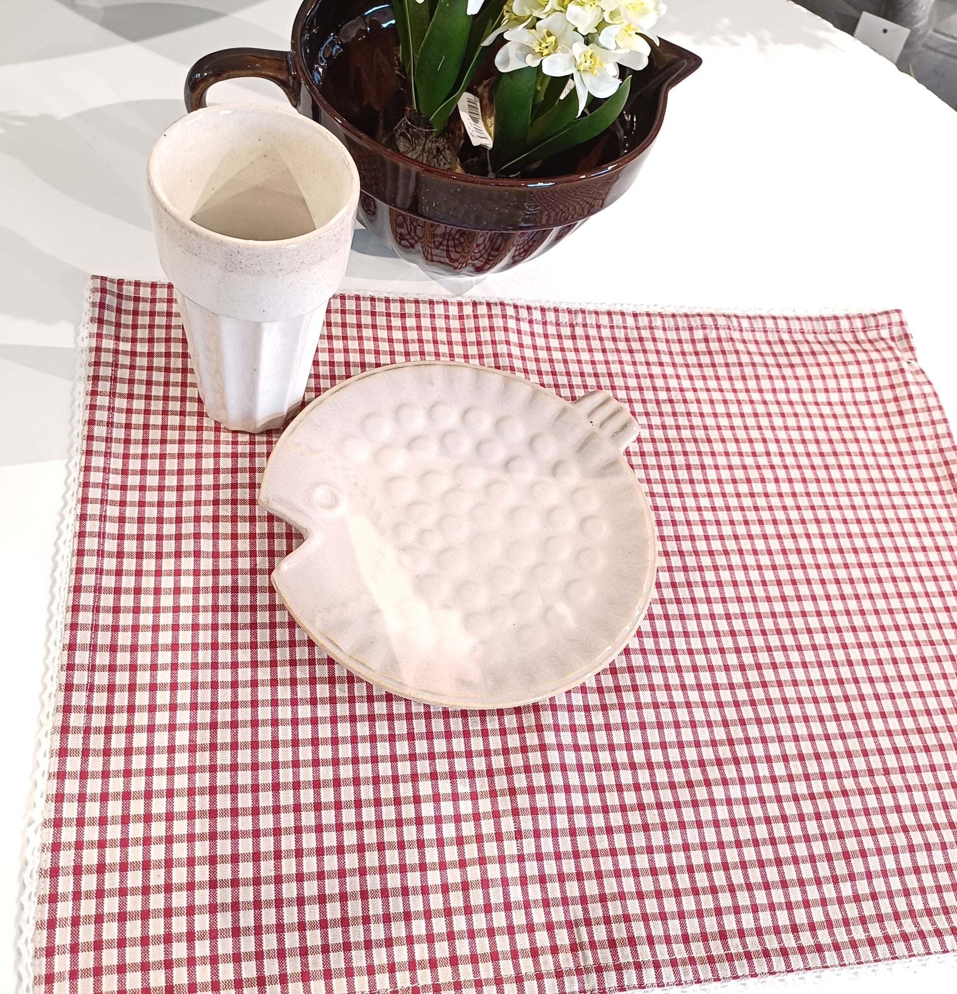 Rødternet klassisk firkantet dækkeservietter med hvid blonde.