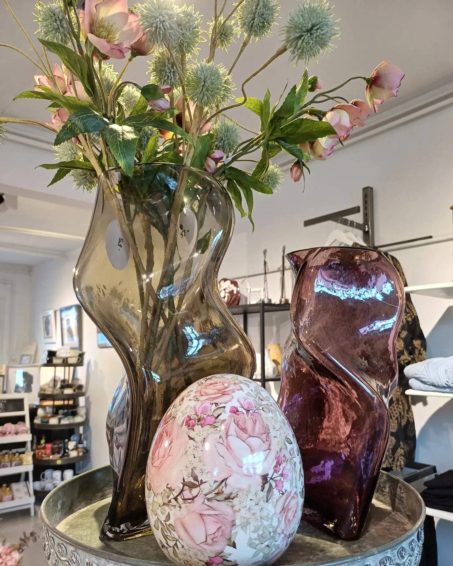 Det organisk design gør vasen ekstra dekorativ, så den kan bruges med blomster eller blot som dekoration alene.