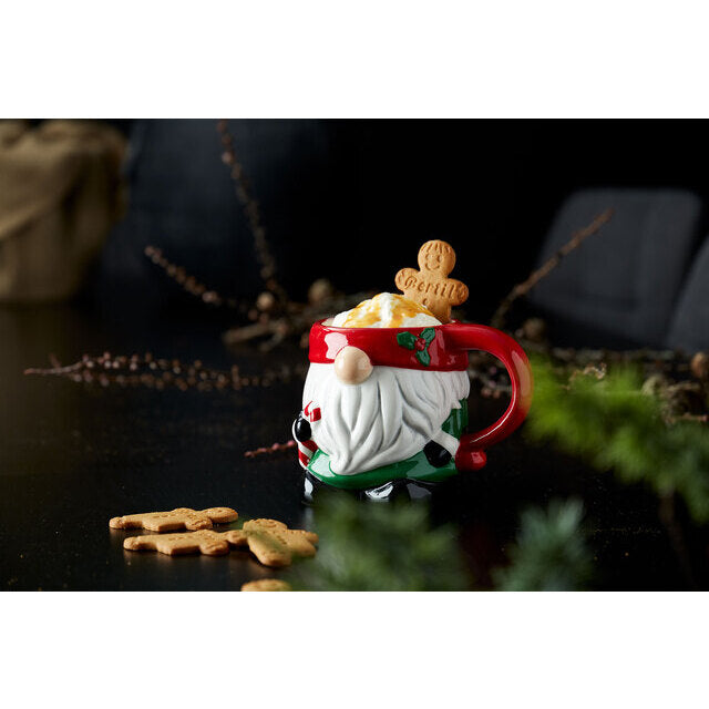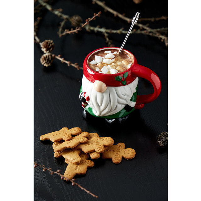 Sættet indeholder en flot keramik kop med juledesign, perfekt til en dampende varm kakao toppet med bløde skumfiduser.