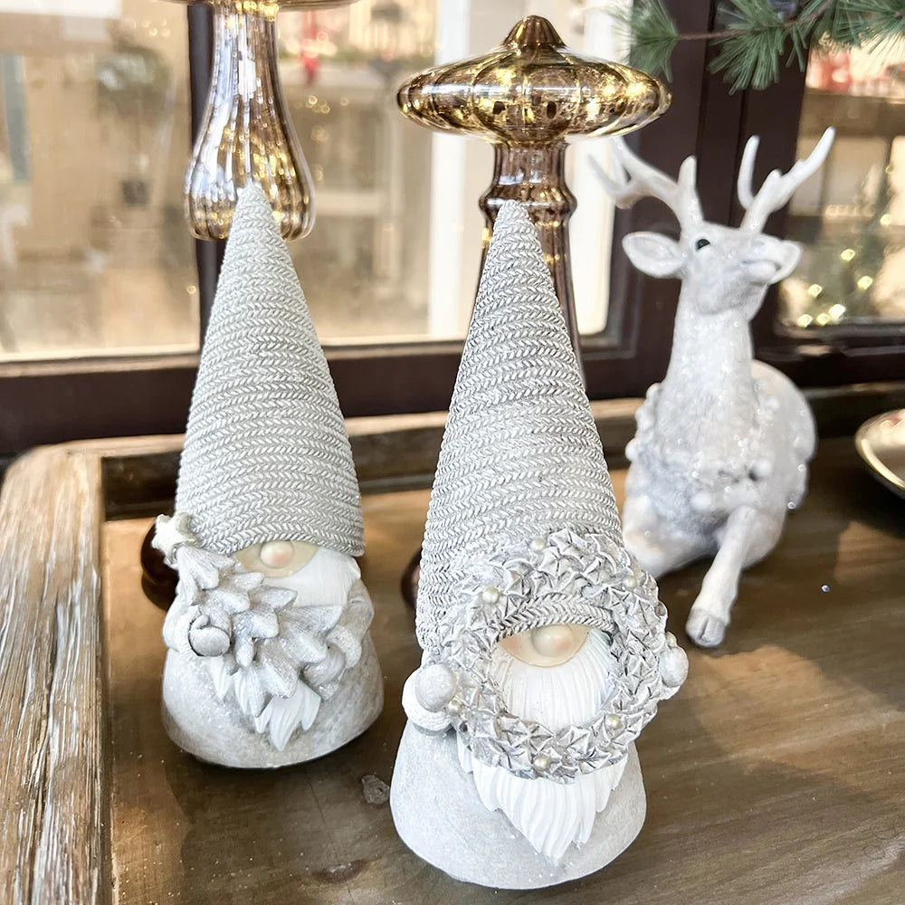 Nissefigurer i elegant og moderne design er perfekte til at skabe en hyggelig og festlig julestemning i hjemmet. Med deres sølvfarvede hatte og detaljerede udformning bringer de et stilfuldt touch til julepynten.