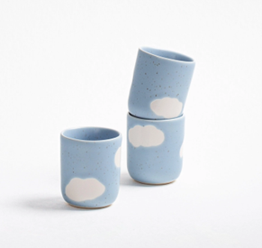 Hver kop er lavet i holdbart stentøj med en smukke skyer og farve på indersiden. De fine pastelfarver giver et legende udtryk, perfekt til både hverdag og gæster.