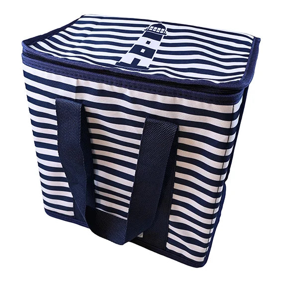 Praktisk og stilfuld køletaske med maritimt fyrtårnsdesign. Tekstilerne er 100% bomuld, Produceret i materialer certificeret efter Oeko-Tex® Standard 100. Det betyder, at tasken er testet for sundhedsskadelige stoffer og opfylder kravene til produkter i direkte hudkontakt.