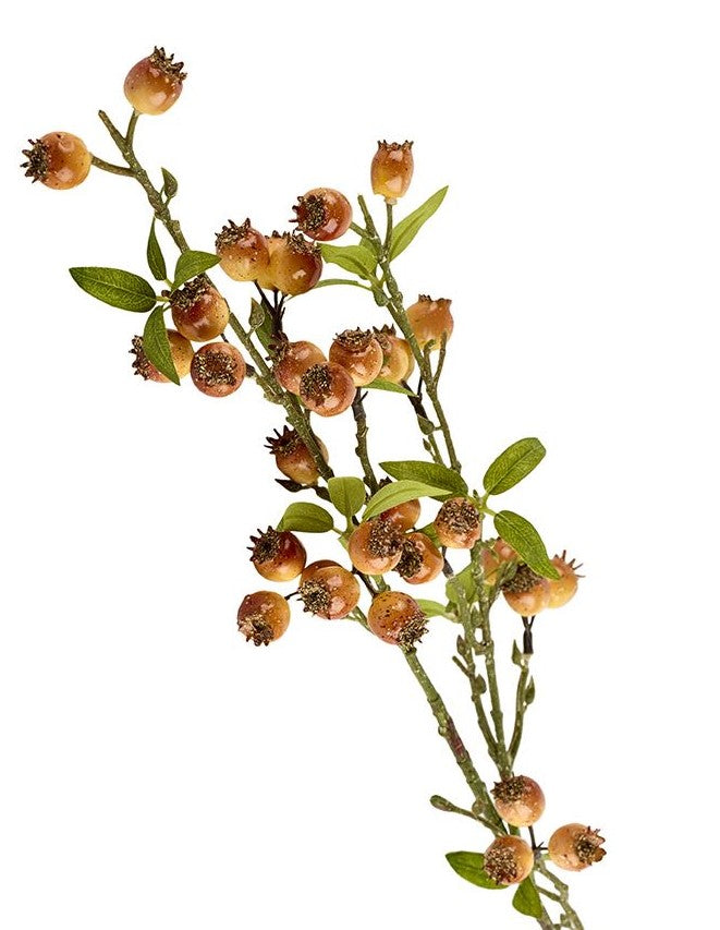 Grenen har flotte hybenbær i varme nuancer samt grønne blade, som gør den ideel til både jule- og efterårsdekorationer, vaser eller bordpynt.
