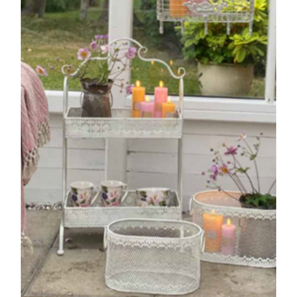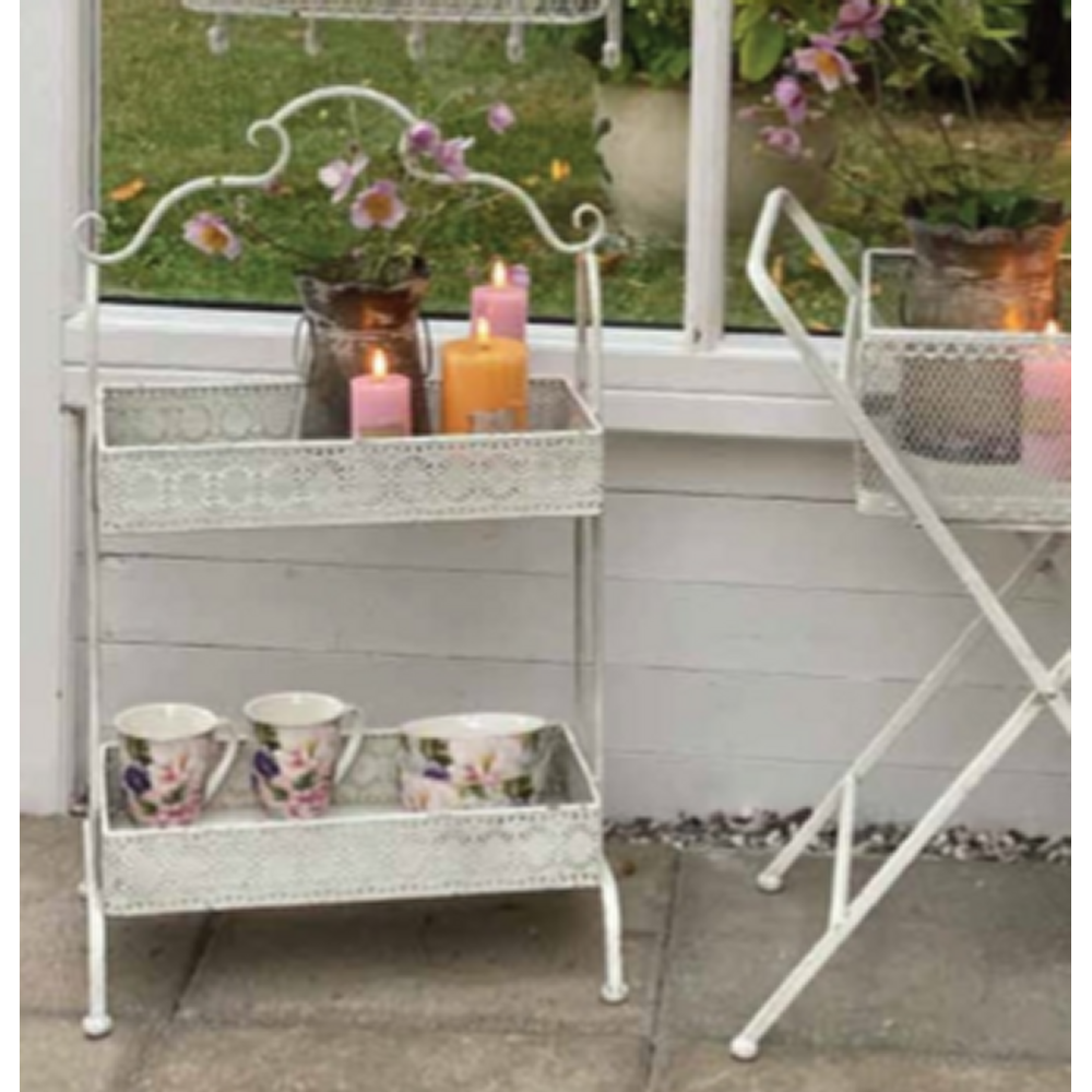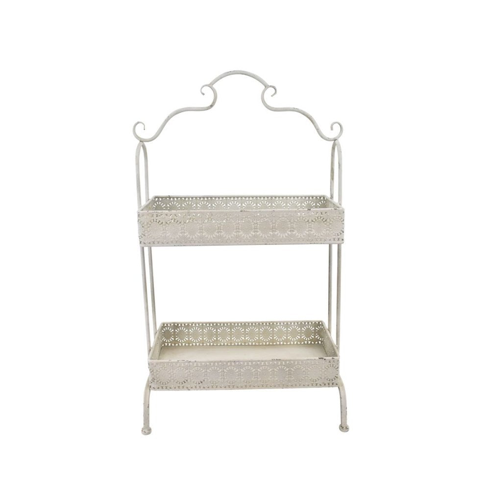 Romantisk metal opsats eller bakkebord 2 delt i antik hvid