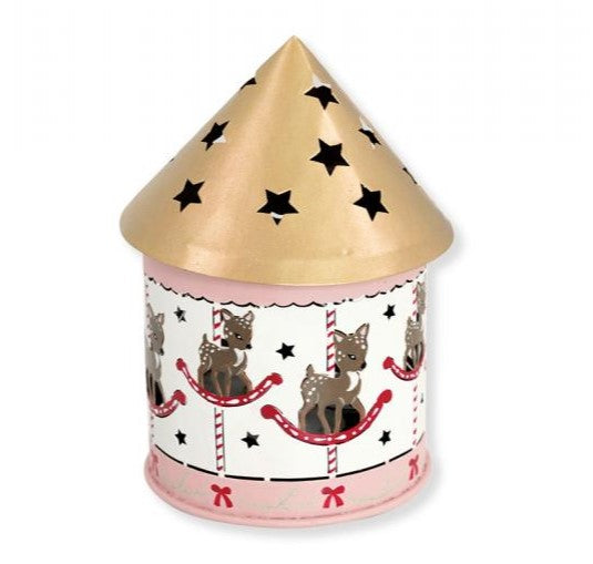 Sød lanterne i metal med stjerne og bambier som mønster.