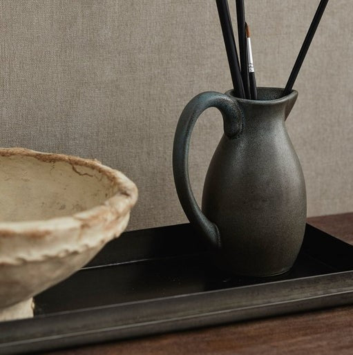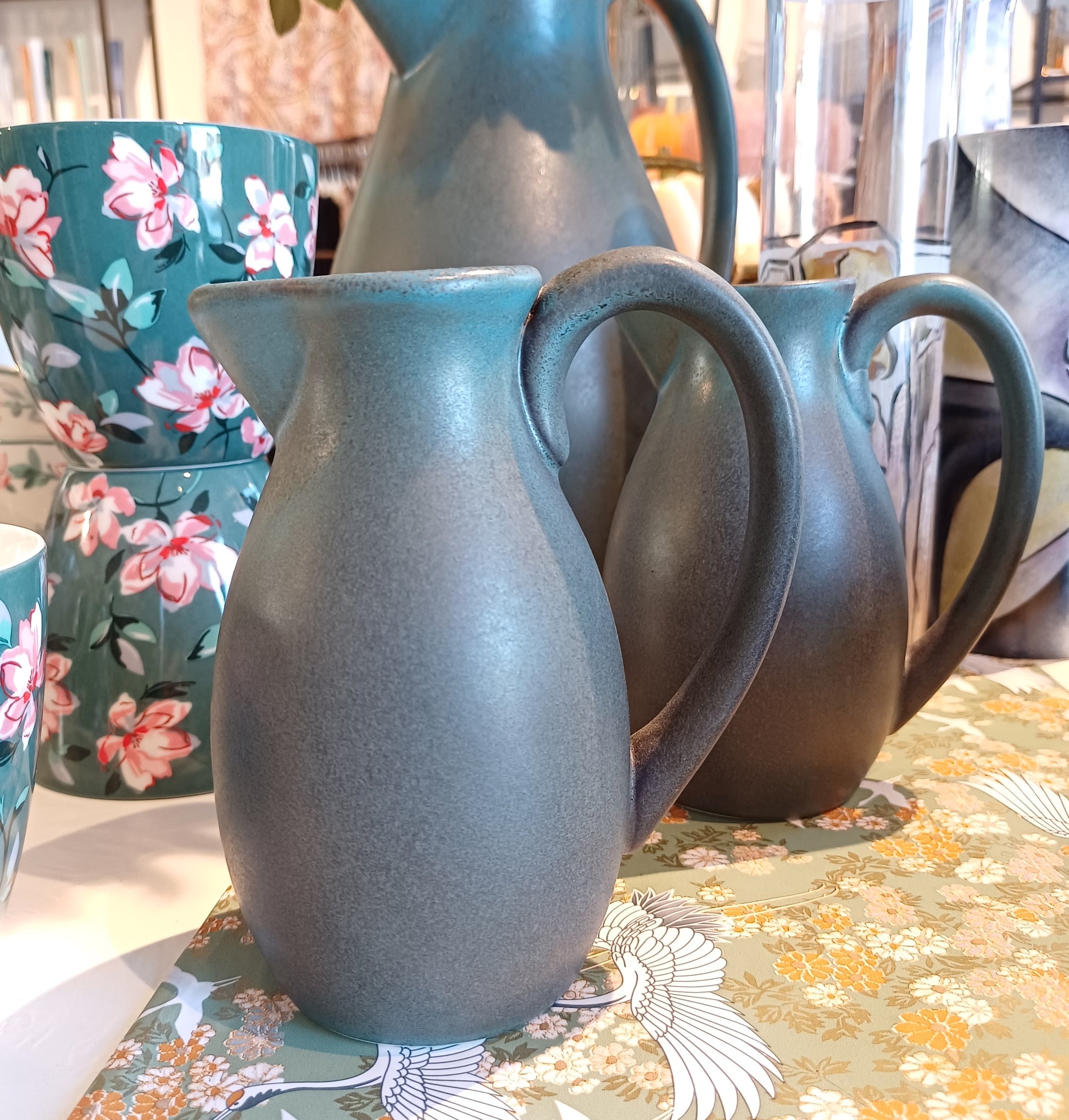 Flot grøn brun rustik keramik kande i stentøj. Har en flot og dejlig glat mat glasur.