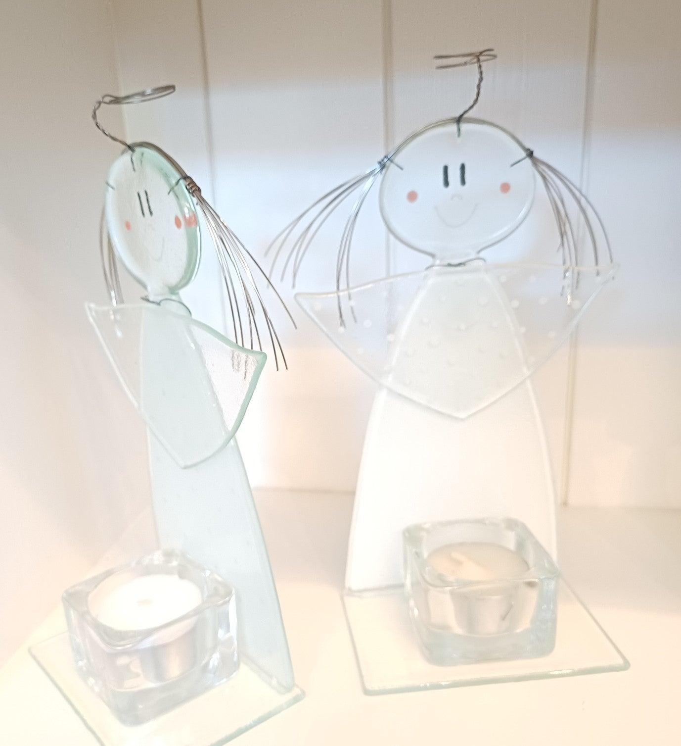 Håndlavet Penny Engle til fyrfadslys – unik glasengel