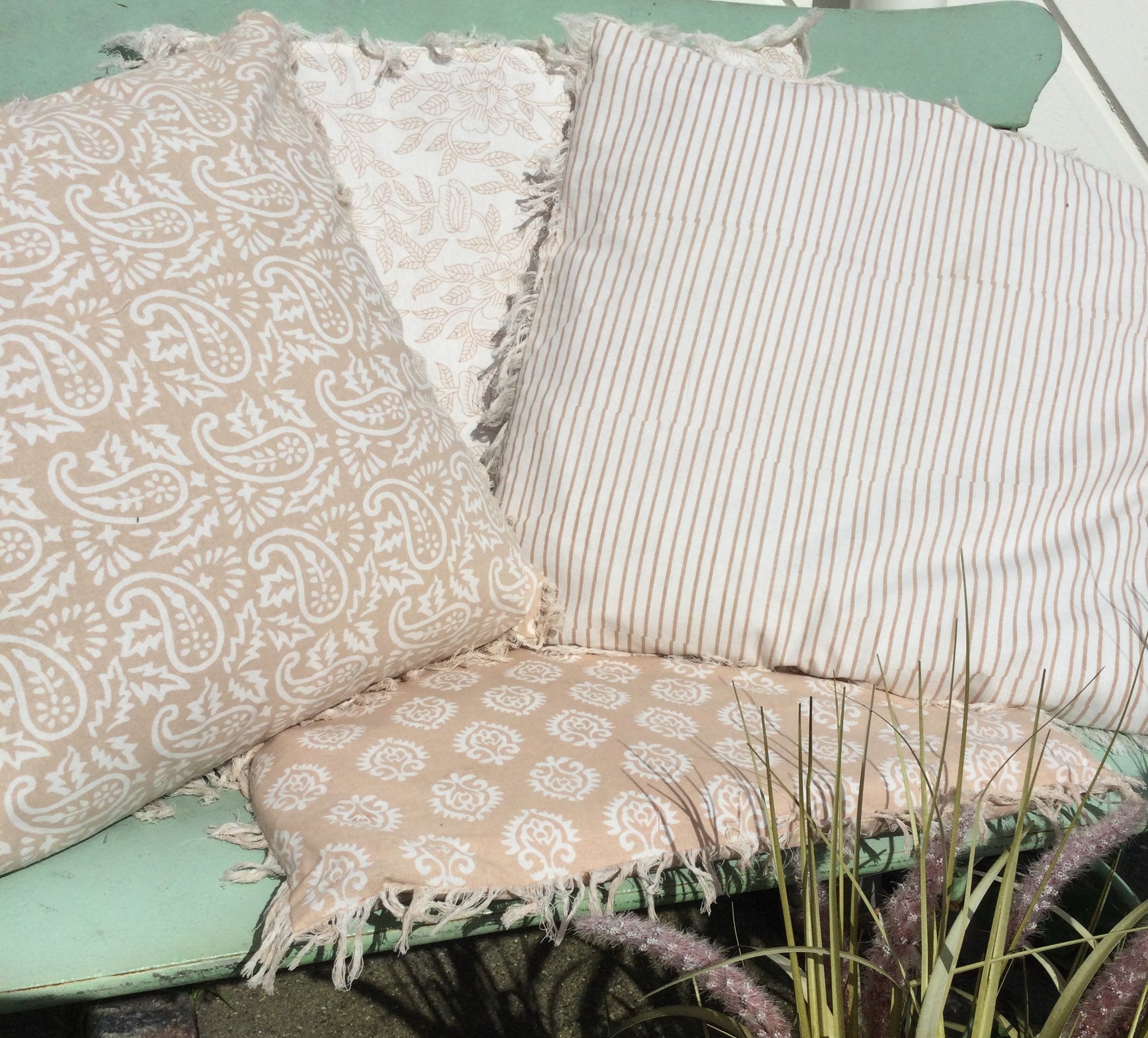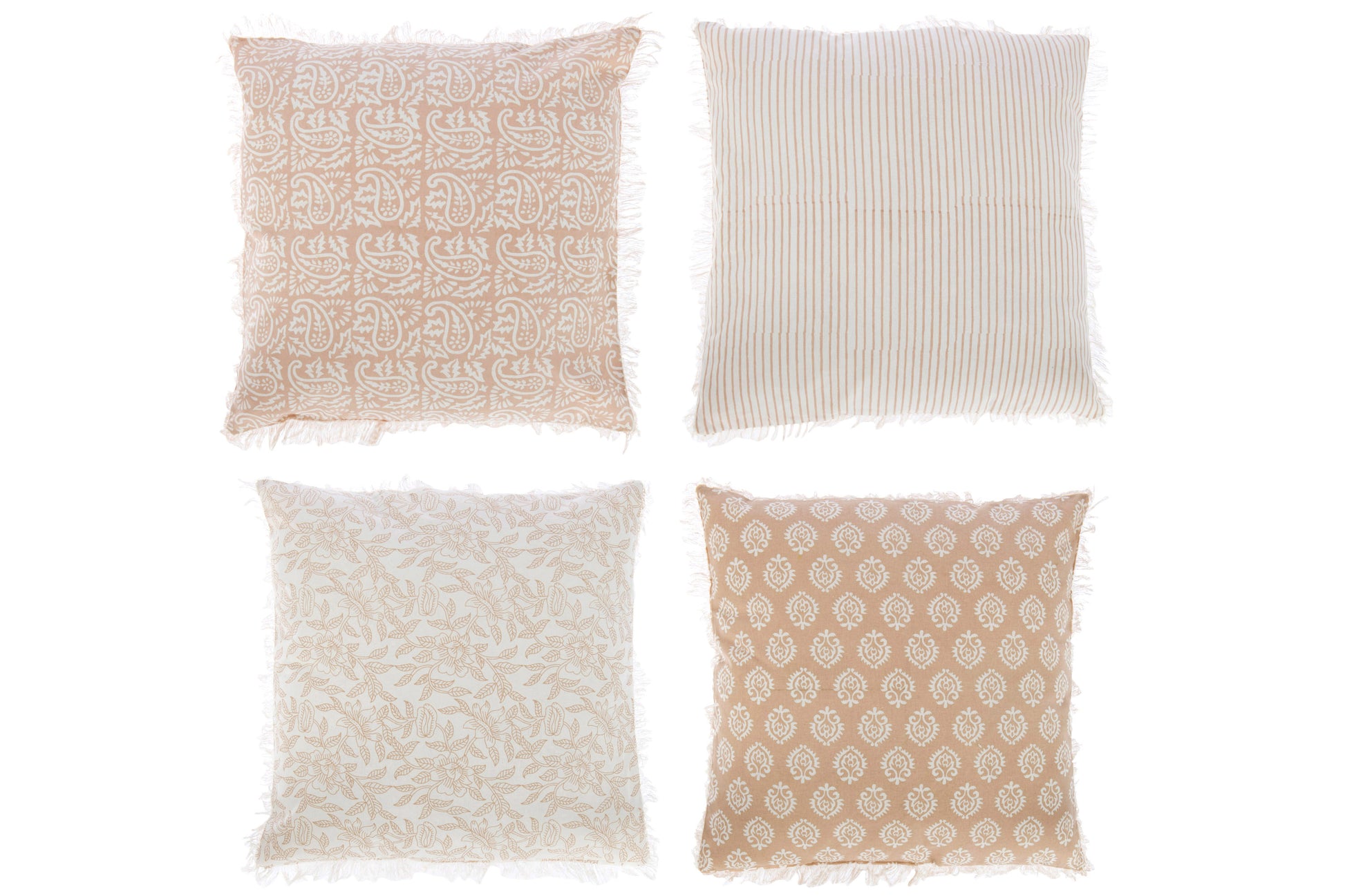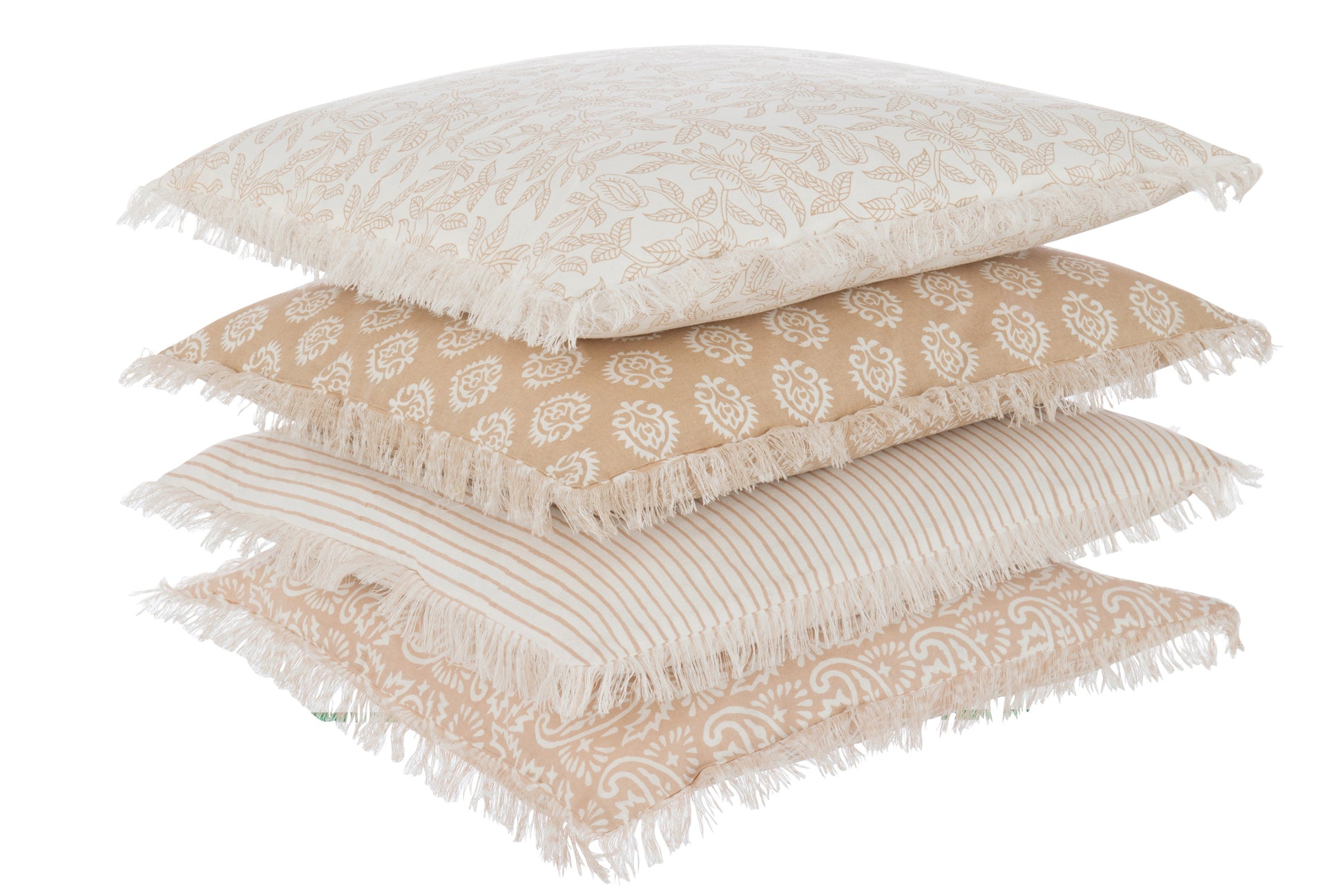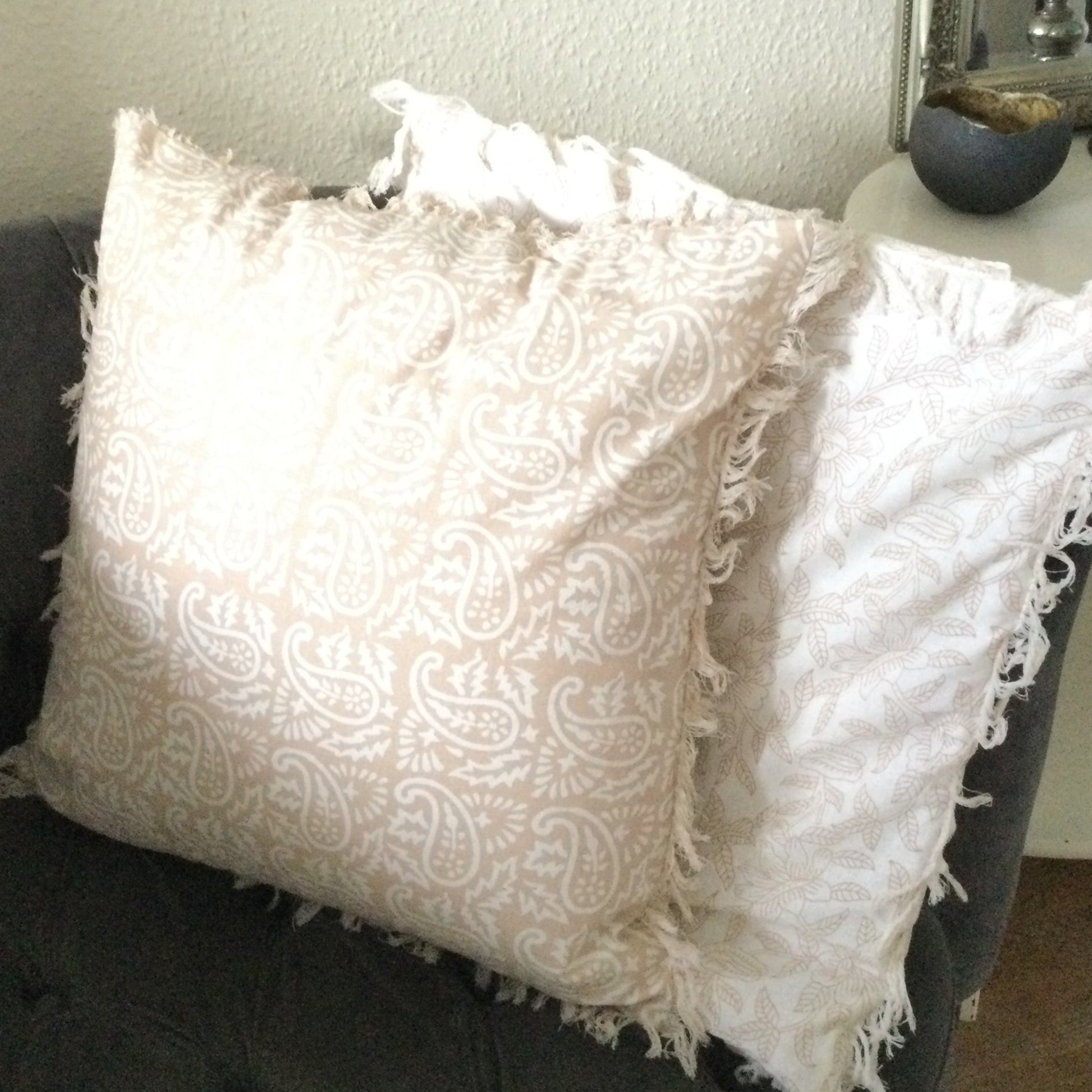 Pude i hvid og sandfarve med fyld – blød og dekorativ