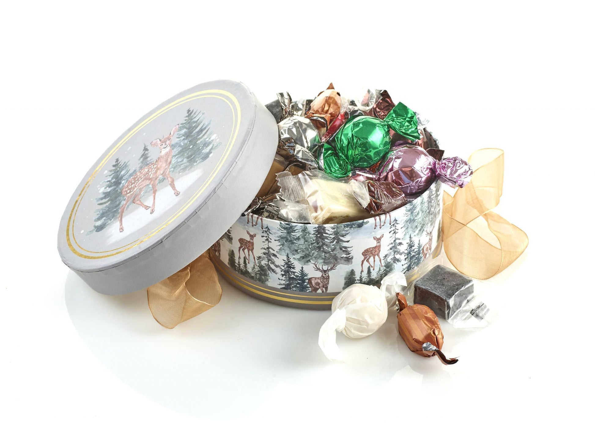 Rund Hatteæske Rensdyr, Mixede chokolader og slik.