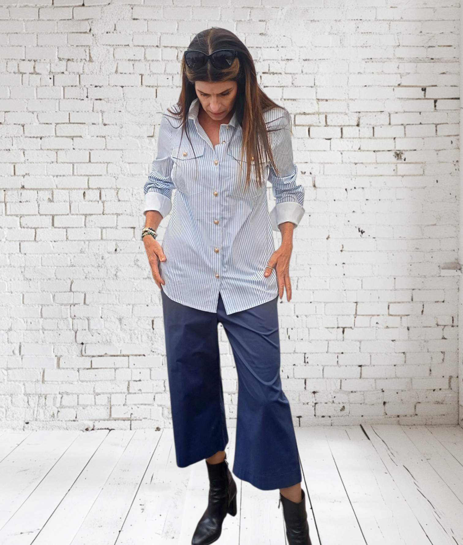 Stump bukser i blå.