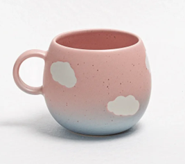 Lyserød og blå med hvide skyer håndlavede keramikkrus fra Egg Back Home.