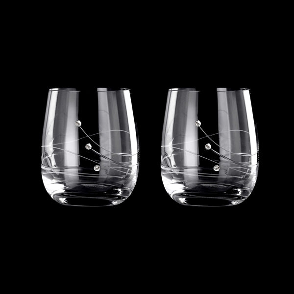2 stk. tumbler glas med graveringer og Swarovski krystaller.