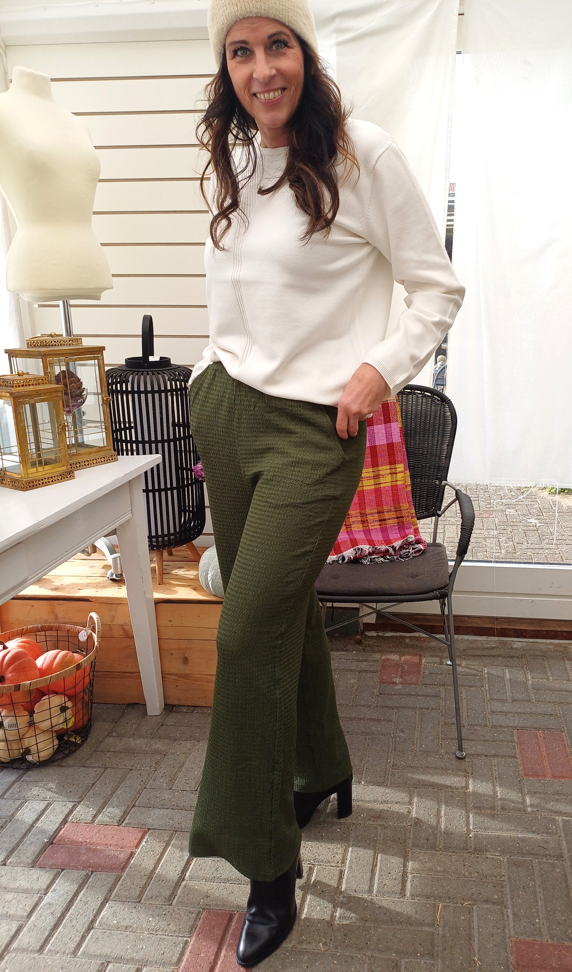 Dejlige lette behagelig bukser med stretch og skrå lommer, elastik i taljen. Løs pasform, der sikrer et afslappet men sofistikeret look. Det lette viskosestof gør den ideel til forår og sommer.